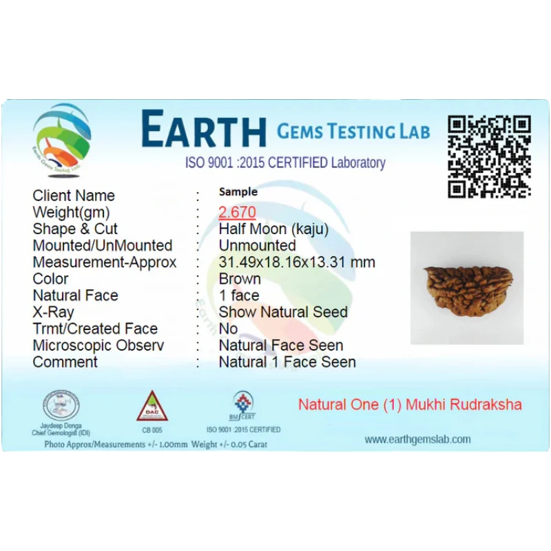 The 1 Mukhi Rudraksha is the rarest and most powerful Rudraksha bead, ruled by the Sun. It is believed to bless the wearer with peace, prosperity, improved concentration, and spiritual growth. Certified for authenticity, this sacred bead is highly revered in Hinduism for its unmatched energy and divine vibrations.