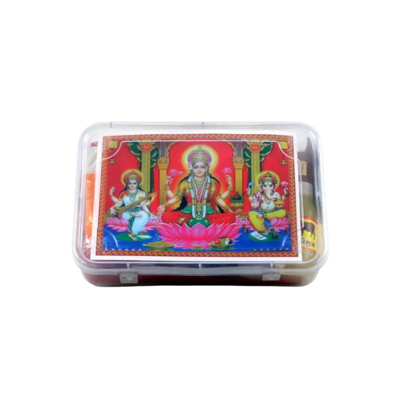 The Diwali Lakshmi Puja Kit is a complete pooja box with 31 essential ingredients for Diwali worship, including Laxmi Ganesh poster, diya, kumkum, haldi, chirmi beads, kaudi, yantra, and more. Designed for ease and completeness, this kit brings prosperity, positivity, and divine blessings to your home.