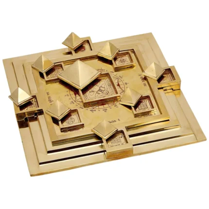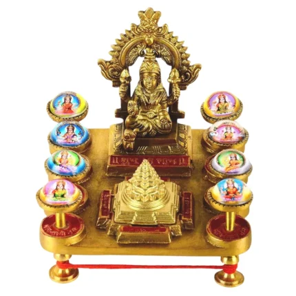 The Brass Ashtalakshmi Shree Yantra Chowki is a divine yantra featuring the eight forms of Goddess Lakshmi surrounding the Sri Meru Yantra. Crafted in pure brass, it symbolizes prosperity, wisdom, health, strength, and abundance. Ideal for home, office, or gifting, it removes obstacles and attracts wealth and success.